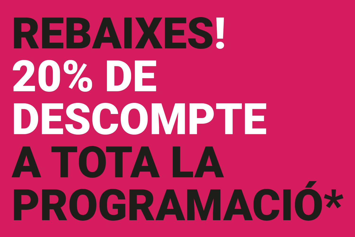 ¡Estamos en época de rebajas! Consigue un 20% de descuento en todos nuestros espectáculos (*a excepción de El Pot Petit que queda fuera de la...