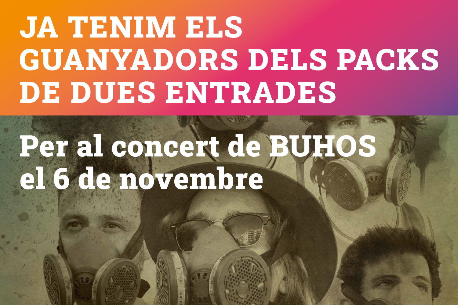 En L'Auditori de Cornellà sorteamos dos packs de dos entradas cada uno, para el concierto de Buhos el próximo sábado, 6 de noviembre a través de...